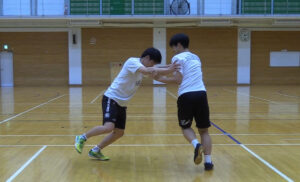 カニのように横走り(サイドステップ)しながら行う鬼ごっこ。まっすぐ走るのは禁止。